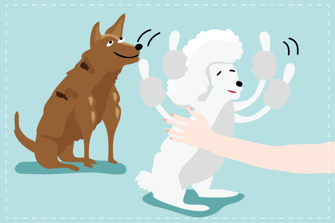 當散步時、狗狗聚會時,看到別人家的狗總忍不住想要摸一下,摸完之後主人應該會感覺到自己的狗狗或許會有爭寵或是著急的表現,這代表狗狗吃醋啦!