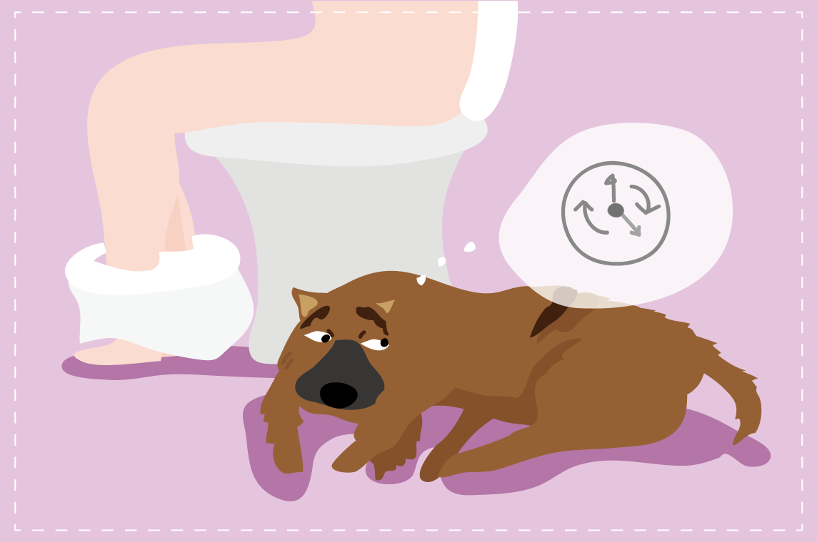 就是進入廁所時狗狗會很雞婆的一起跟進去,或是在蹲馬桶時突然進來坐在你腳邊看著你!!