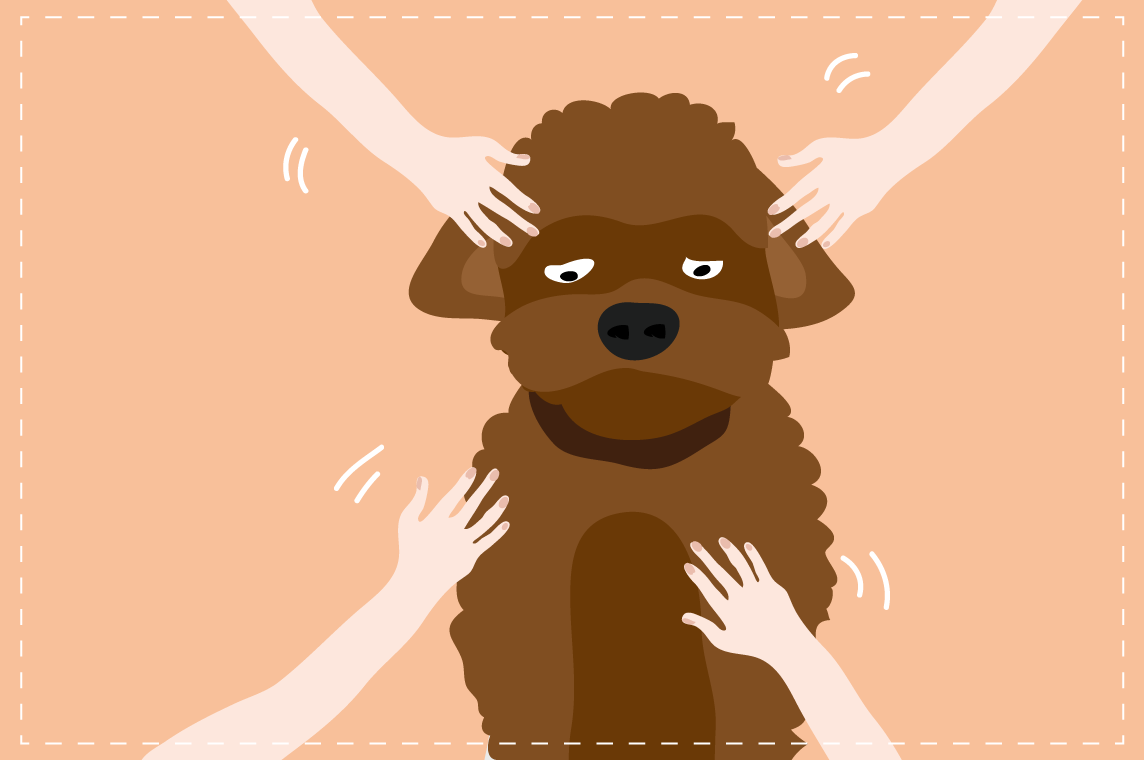 狗狗對於陌生人會比較警戒,因此如果動作太大或太快都可能嚇到狗狗;即使是家人,有些動作也應該避免,像是抓住狗狗的嘴巴、手在狗狗面前揮來揮去等等。