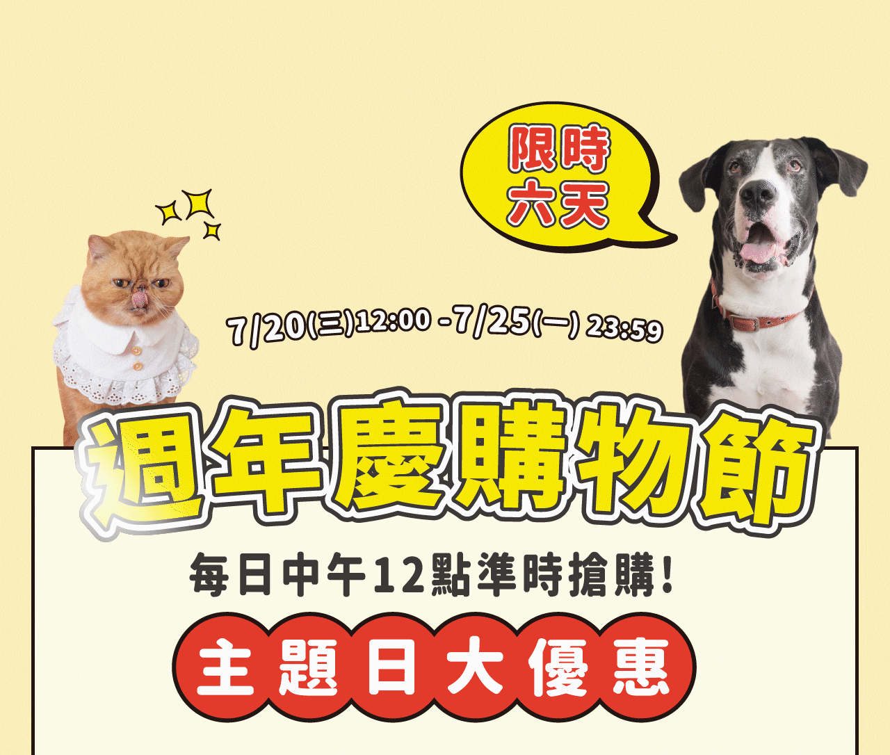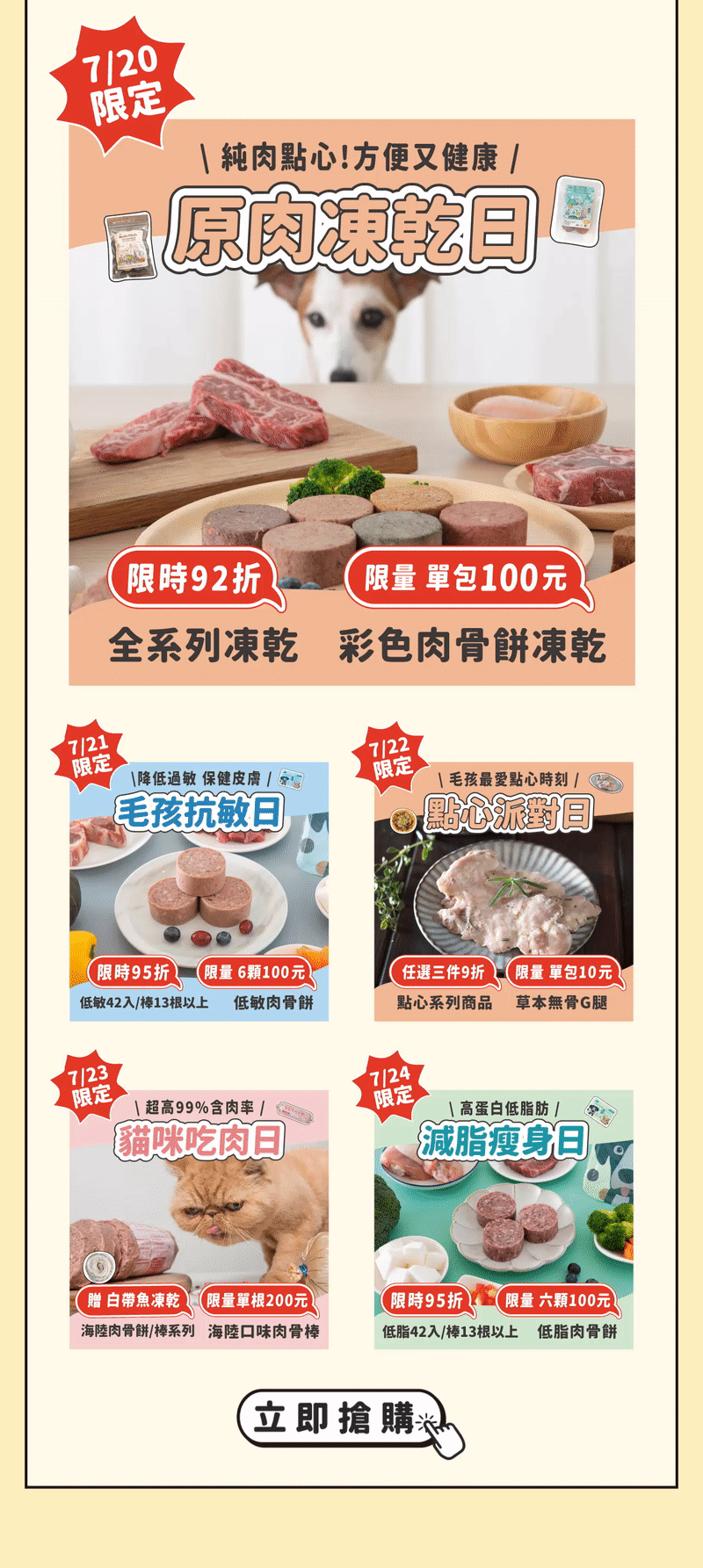1.7/20-7/24主題日下殺產品每日中午12點開賣,數量有限,每人限購1組。