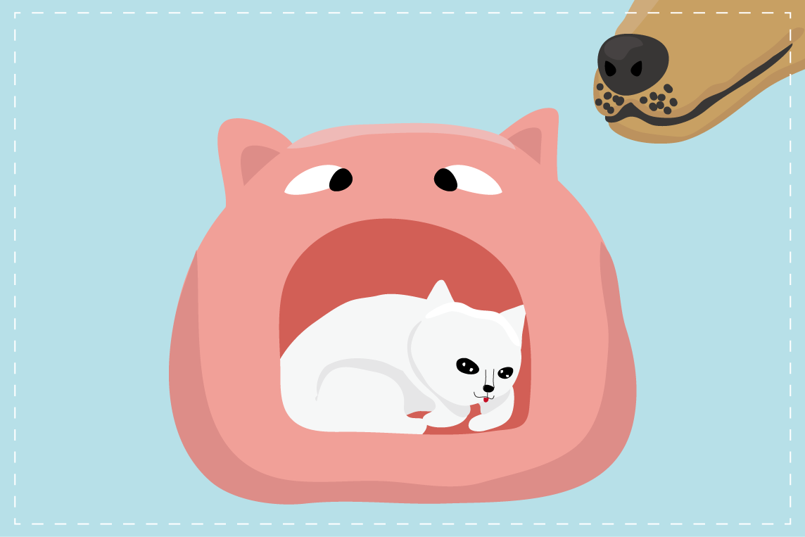 捕獵天性較強的成犬有可能對貓咪構成威脅,讓有些品種的狗和貓一起生活要特別謹慎。曾被用來賽跑、打獵的大型犬通常會把小動物當作追捕的對象。而那些面部扁平,眼球突出的犬種,如北京犬、巴哥犬,由於眼睛極易受傷,也不適合與具有攻擊性的貓相處。