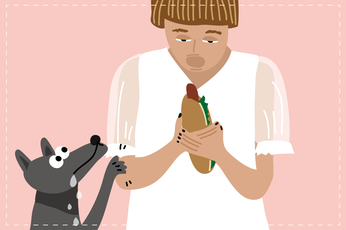 當主人正在吃東西的時候,狗狗經常會跑來,把手放在主人身上,這時他其實想釋放的訊息是,他也想吃。不過主人也要拿捏分寸,避免狗狗吃了不適合自己的食物,影響健康。