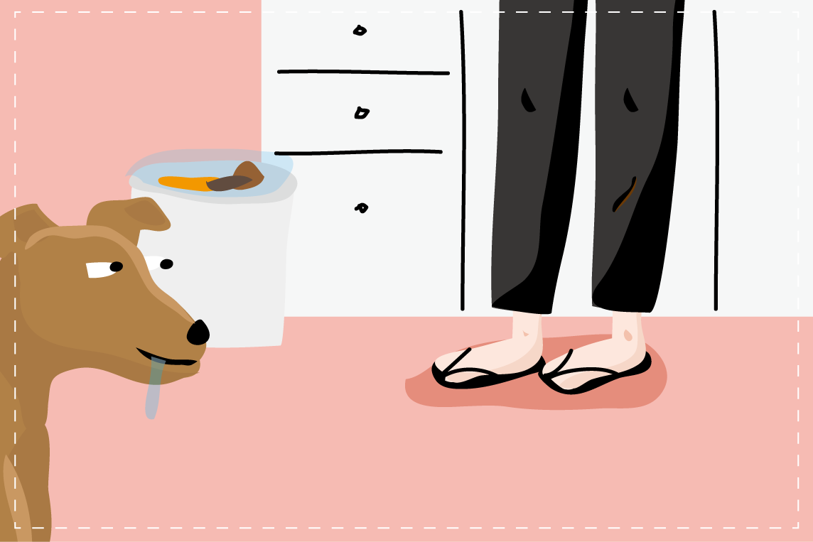 (3) 如果你在廚房裡,狗聽見你打開食品包裝,狗會怎麼做?