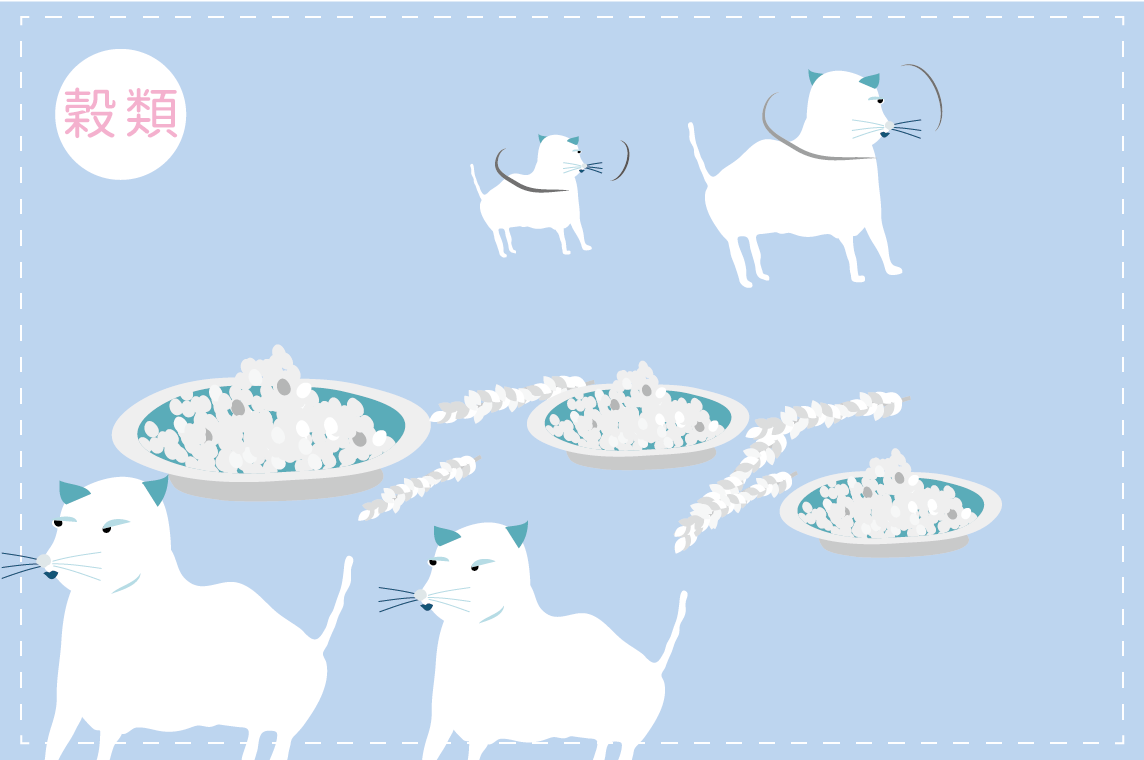 穀類的範圍包括常見的米、糙米、大麥、燕麥、蕎麥等,對毛小孩來說並非是天然食物,因為那並不是牠們在野外會『主動去』去吃的大量主食。(我們可能聽過野生的犬貓科動物去襲擊像是養雞場或牛豬羊牧場,但絕對不會聽到他們去偷襲玉米田、稻田、麥田等,這說明自然狀況下穀類食物並非他們生理所需的營養)